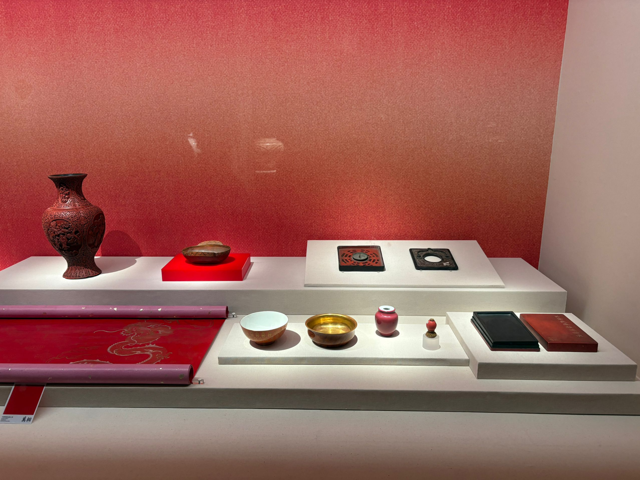 随后,师生移步至“万相——中国传统色彩之美”展览。该展览系统梳理并展示了中国传统文化中丰富绚烂的色彩体系及其美学内涵。从矿物颜料的天然色泽,到织物染印的瑰丽色谱,再到器物釉彩的万千变化,展览为同学们打开了一扇理解传统色彩美学的大门。大家尤其关注色彩与材质(包括泥土烧制后的陶瓷表面)的结合方式,思考如何将传统色彩的神韵与现代陶艺的造型、釉料实验相结合,从而在未来的创作中展现更具文化底蕴的视觉表达。