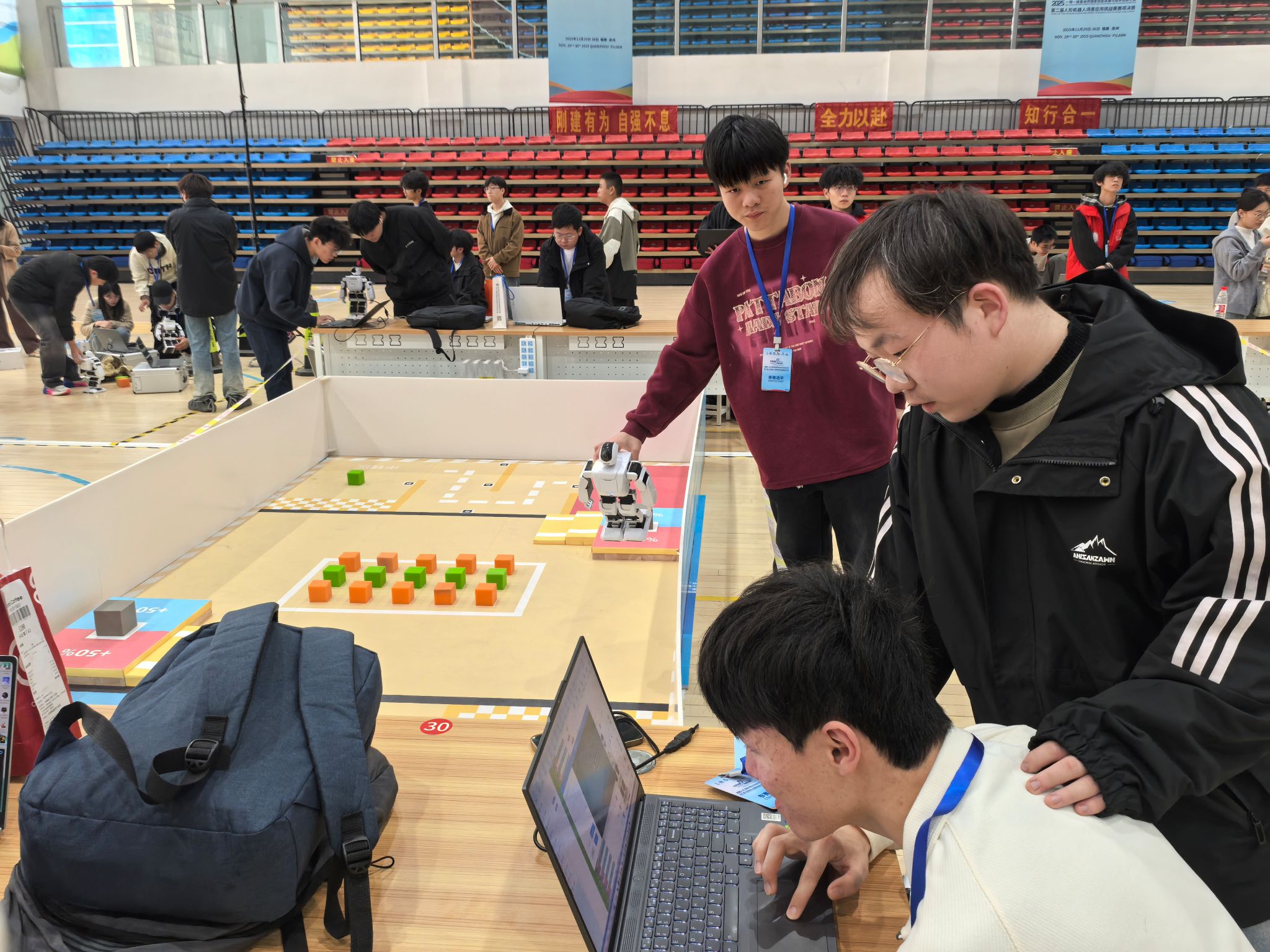 备赛过程中,团队围绕人形机器人在动态场景中的智能应用,制定了系统的训练方案。在张镭镭、徐娜两位老师的指导下,同学们将大数据分析与智能决策逻辑融入机器人架构,坚持每日集中训练,通过实体场地反复调试机器人的感知与执行闭环。