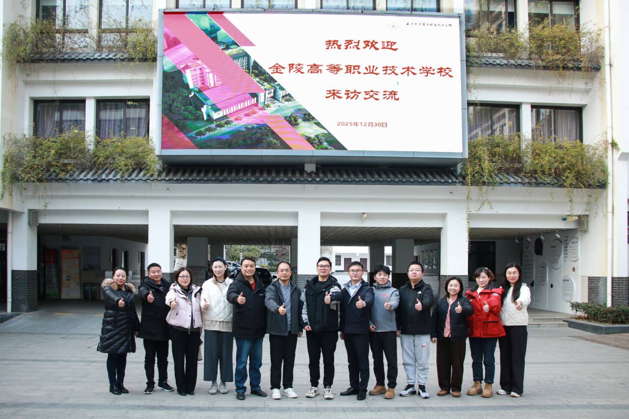 金陵高职校信息技术系主任徐金生、副主任孙姗姗及各专业负责人围绕专业转型、课程体系重构、实训教学创新等内容,与学校进行了探讨交流。双方就共同关心的职业教育热点、难点问题交换了意见。活动最后,两校参与人员在教学楼前合影留念。