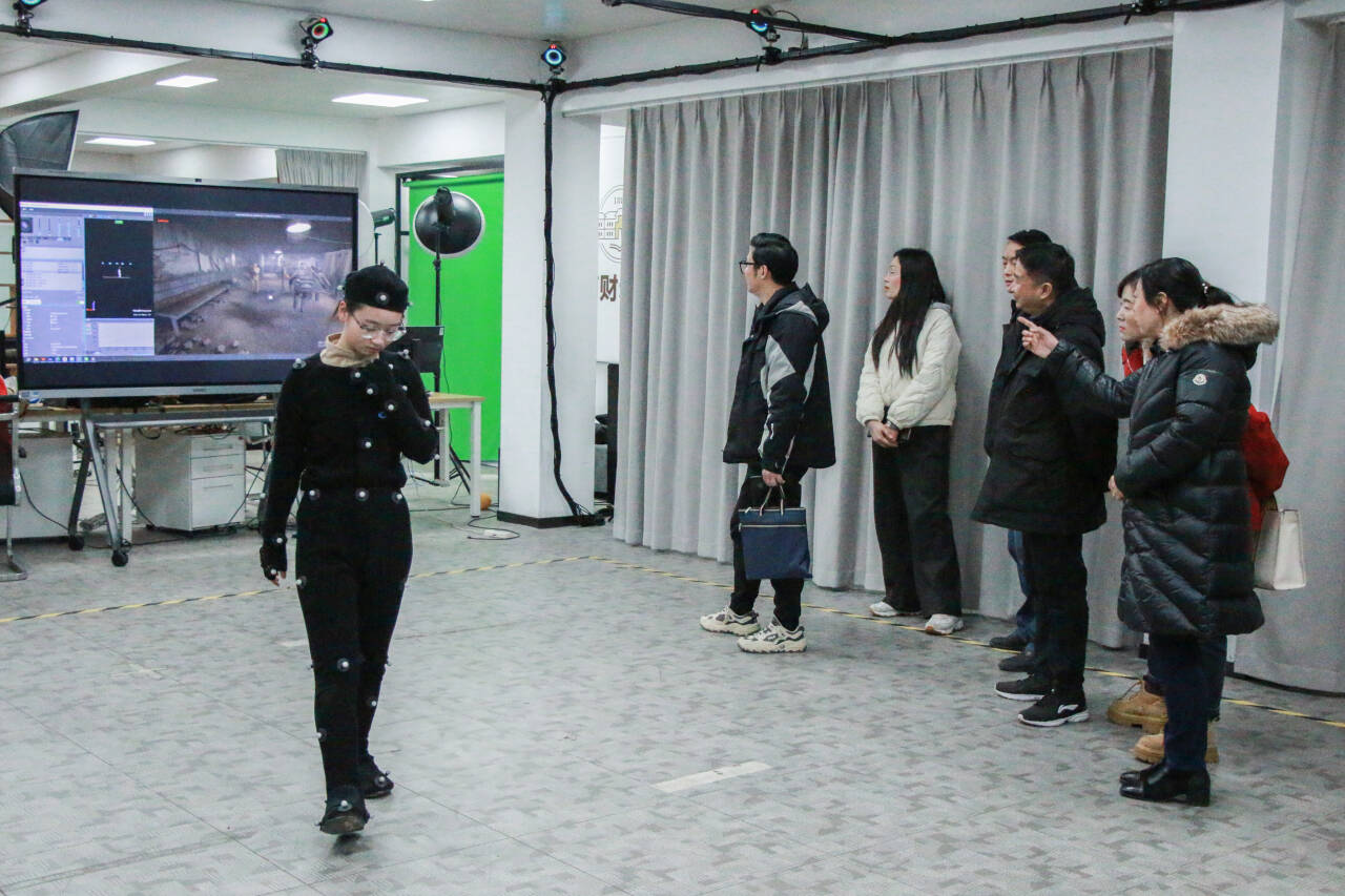 金陵高职校一行在张镭镭陪同下,参观了校内孵化企业、动捕实训室、专业展厅等多个实训场所,观摩了数字人交互、动作捕捉等实训场景,对学校在动漫设计、数字媒体、计算机网络等领域的实训设施与教学成果给予了高度评价。